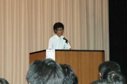 6月21日(月)、第3回生徒会朝会がありました。体育大会を終えての感想や、期末考査に向けての意気込みを生徒会役員が語ってくれました。「残念ながら優勝は出来なかったけど、体育大会をとおしてクラスが一致団結していく過程が良かった」という言葉が、とても印象的でした。