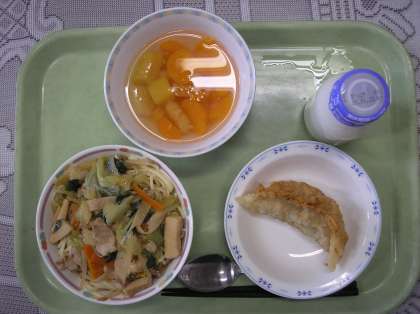 私の好きな給食メニューシリーズ第7弾 公開日 2010/06/22 更新日 2010/06/22 校長室より 私の好きな給食メニューシリーズ第7弾は、チャンポン麺とジャンボ餃子です。お店で売っている味にも負けないチャンポン麺であり、給食の餃子の定番といえばジャンボ餃子です。教員になってから給食にジャンボ餃子が出たとき、「何だこれは!」と、驚いたものです。そんなことを思い出しながらおいしくいただきました。 写真左から:チャンッポン麺・フルーツポンチ・ジャンボ餃子・牛乳(校長) いいね(0)
