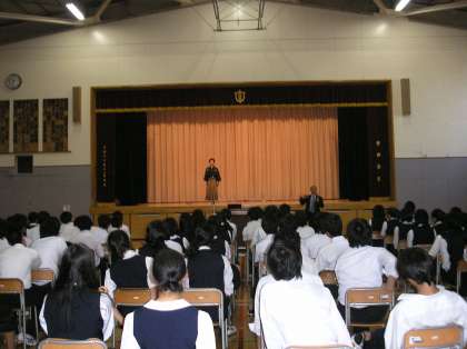 歌舞伎の楽しみ方を学びました。 公開日 2010/06/24 更新日 2010/06/24 学校生活 3年生は、本日5.6校時に体育館で歌舞伎について学びました。講師に歌舞伎研究家の大倉直人先生をお招きし、映像や実演を交えて歌舞伎の楽しみ方を教えてもらいました。 いいね(0)