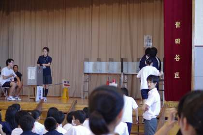 今回は投票箱や記載台を使って、実際の選挙と同様に投票を行いました。
