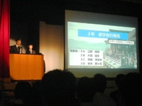 10月22日(土)、学芸発表会(舞台の部)が行われました。開会式の後、I組・各学年の総合的な学習の時間でまとめた行事の取組をパソコンを使用して発表しました。パソコンを使った発表の後は、1・2年生選抜グループと3年生のダンス発表です。体育の授業でクラスやグループで意見を出し合いながら作り上げたもので、大いに盛り上がりました。生徒の皆さん、お疲れさまでした。また、地域・保護者の皆さま、お越しくださり大変にありがとうございました。