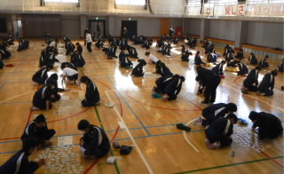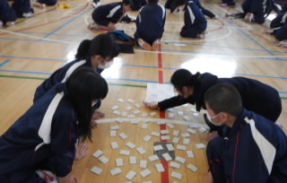 2月17日(金)の午後、体育館で1年生とI組の交流百人一首大会が行われました。いつもは寒い体育館ですが、今日は防寒着が必要ないくらい気温が高く、半袖姿の生徒もいました。百人一首大会は、日本文化の伝統に触れ、豊かな心を育成することや、他のクラスとの親睦を深めること等を目的として行われています。勝っても負けても、仲良く楽しそうに競技に取り組む姿がとても印象的で、気温以上に暖かく和やかな雰囲気の中、交流を深めることができました。来年もまた、よろしくお願いいたします。