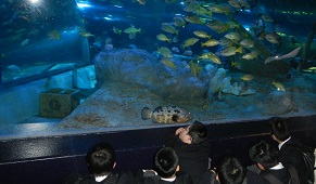 2月23日(木)、I組お別れ遠足で「しながわ水族館」へ行きました。「トンネル水槽」で頭上を泳ぐ魚たちを眺めたり、クラゲと一緒に写真を撮ったり、ダイナミックな「イルカショー」を楽しんだりしました。3年生と1・2年生との楽しい思い出がたくさんできたようです。