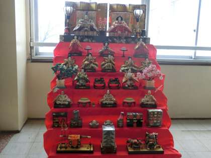 3月3日は、日本の伝統的な行事、桃の節句です。「おひな様」を飾ります。本校の2階中央階段踊り場に、8段飾りのおひな様が飾られています。今年近隣の方からいただきました。豪華な8段飾りに見入っている生徒もいます。ぜひ、本日はご家庭で、おひな様の歌を口づさんでください。