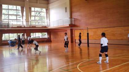 女子バレーボール部練習中の声も大きく出せるようになり、練習に気合いを感じました。