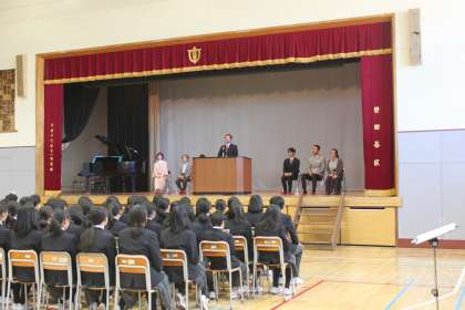 離任式 公開日 2017/05/01 更新日 2017/05/01 学校行事 28日(金)6名の教職員の方々を迎えて離任式を行いました。一人ひとりの先生方に、生徒代表によるお礼のことば、花束を送りました。お世話になった先生方に感謝し教えていただいた思い出を胸にがんばることを伝えました。 いいね(0)