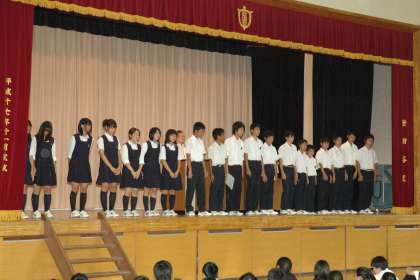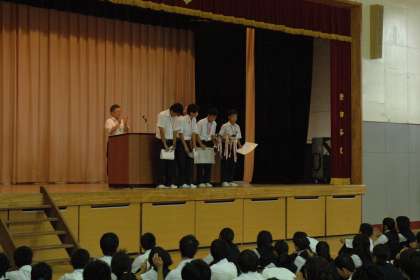 8月25日(水)、第2学期始業式を行いました。蒸し暑い体育館の中、生徒たちはしっかりとした態度で校長先生の話を聞いていました。生徒たちの表情には2学期にかける期待というものが感じられ、心も体も一回り成長した気がします。また、始業式の後、夏季休業中における部活動の表彰式を行いました。2学期は修学旅行、連合陸上競技会、合同発表会などがあります。仲間とのつながりや絆を大切にして、楽しい思い出を作ってほしいと思います。