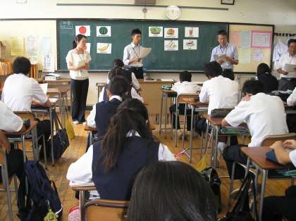 弦巻小学校、松丘小学校の先生方が来校し、弦巻中学校の先生と授業に加わりました。