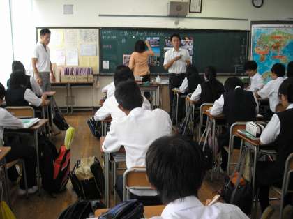 8月30日に弦巻中学校にて三校合同授業研究を行いました。