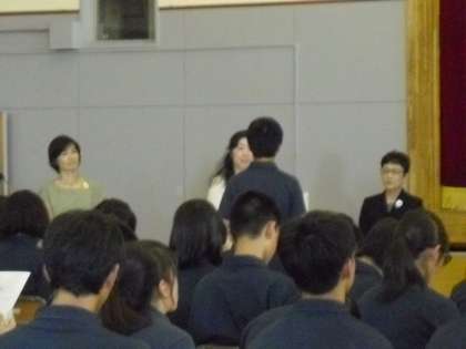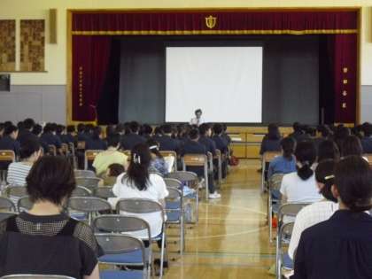 7月14日(金)6時間目。3年生と保護者の皆様を対象に、「高校の先生の話を聞く会」が行われました。都立2校、私立1校の先生方に話していただきました。各学校の特徴や高校選びのポイント、さらに高校の先にある「社会で求められる人物」についても教えていただきました。