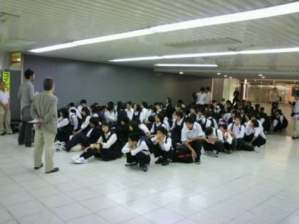東京駅にI組8名全員集合しました。出発式を終え、これからホームに移動します。