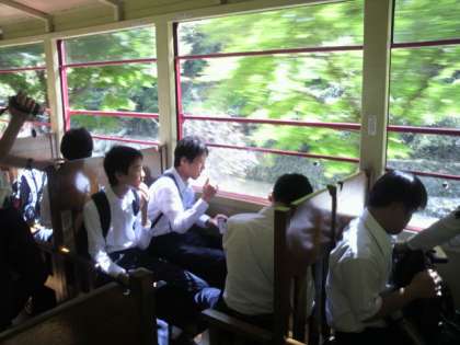 トロッコ列車に乗りました。とても景色が良く、みんな眺めを楽しんでいます。