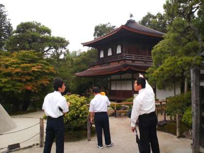 銀閣寺に着きました。雨もカサをささなくてもよい状態です。