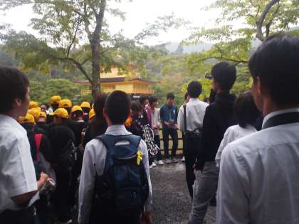 金閣寺に着きました。銀閣寺とずいぶん違うことに驚いているようでした。