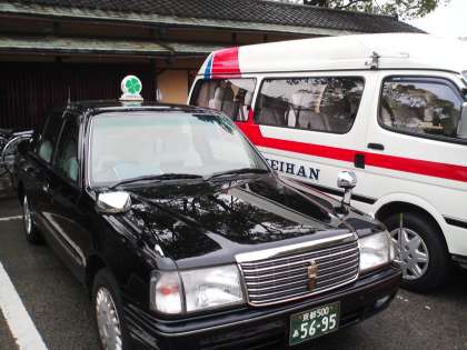金閣寺の駐車場で京都市内に1400台中1台しかない?マークのタクシーを見ることができました。