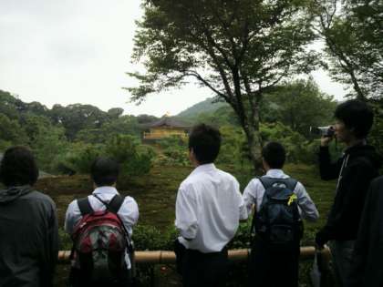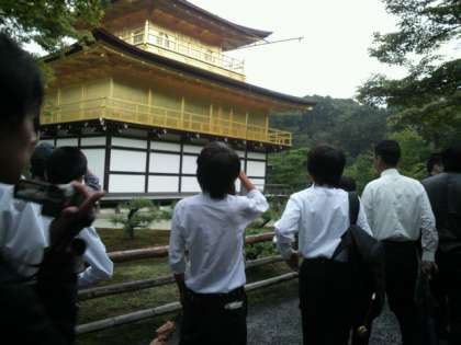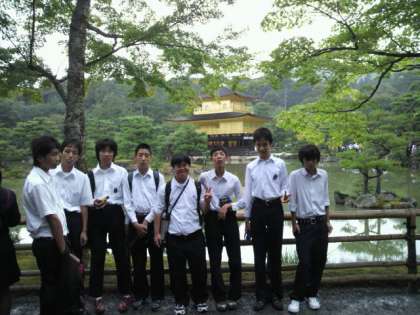 金閣寺でクラス写真を撮り、お土産を買いました。キンピカの金閣寺を見て、やっぱりキレイだな〜と感激していました。