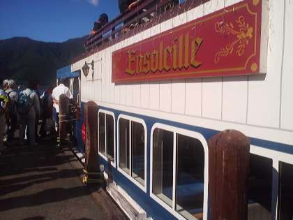 これから遊覧船アンソレイユ号に乗って宿舎に行きます。
