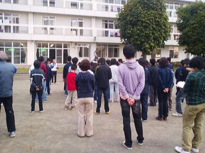 園庭での朝会です。今日も1日頑張っていきましょう。