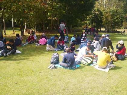 野鳥の森公園に着きました。約1時間の行程を全員歩き切りました。よく頑張りました!そしてお昼です。