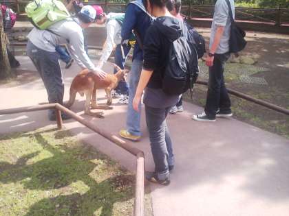 かわいいカンガルーと遊ぶ生徒達。