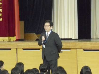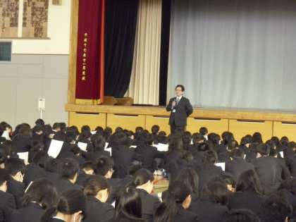 1月10日(水)3学期第1回全校朝礼がありました。校長先生による全校道徳授業講話を行いました。本日から学校公開週間で、1月13日(土)に道徳授業地区公開講座も実施予定です。