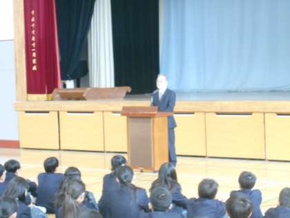 4月11日(水)開校日の記念行事が行われました。講師として、野瀬博前校長をお迎えして、いろいろなお話を伺いました。