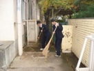 11月25日(木)と26日(金)の放課後、生徒会本部主催による「秋の落ち葉掃き大作戦」に、自立部のメンバーで参加しました。普段使用している西門の周りの落ち葉を掃き、とてもきれいになりました。生徒たちはとても意欲的に取り組んでいて、先生が「もうそろそろ終わりにしよう!」と声をかけても、「まだ、あそこにも落ち葉があるよ〜!」と一生懸命にホウキを動かしていました。