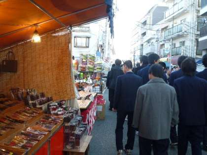 12月15日(水)、世田谷区の伝統行事であるボロ市の見学に行きました。買い物学習として、焼きそばやシャーピンなどの食べ物を買ったり、古本を買ったり、クジ引きをしたりしました。天候にも恵まれ、みんなとても楽しそうでした。
