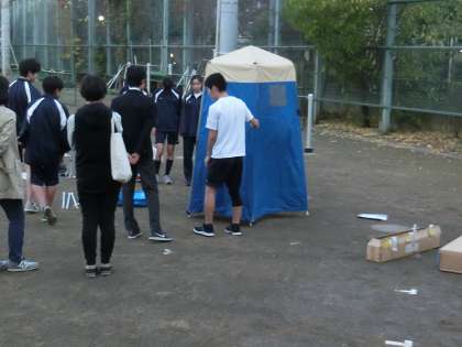 12月8日(土)に行われる避難訓練・体験訓練に向けてTSAの生徒が事前体験並びに正しい方法を学ぶための模擬訓練を11月27日(火)に行いました。