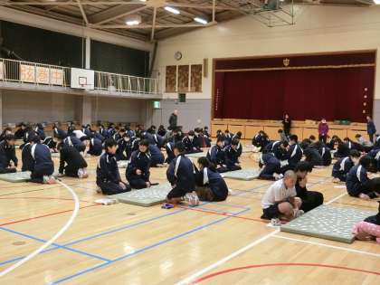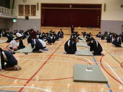 体育館で、I組と2年生の百人一首大会が行われました。外は、雪が降っていましたが生徒の熱狂で体育館が温かく感じられました。