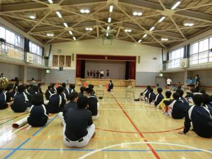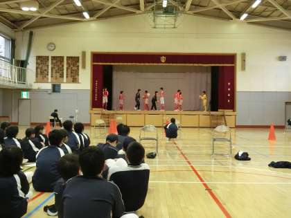 あいさつの日・部活動説明会リハーサル 4月10日(水) 公開日 2019/04/10 更新日 2019/04/10 校長室より 明日の部活動説明会に向けて、体育館でリハーサルをしました。それぞれの部活動が工夫をこらした、自分たちの部活のアピールを考えていました。春休み中に練習を頑張ったのではないでしょうか。明日の本番がさらに楽しみです。 今日は月に1度の「あいさつの日」でした。教室や廊下で会うたびに、元気にあいさつをしてくれました。うれしかったです。 いいね(0)