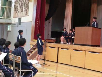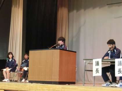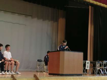 令和元年度前期生徒総会が開かれました。学校生活についてみんなで真剣に考え、提案したことについて、前向きに意見を交換し合っていました。1年生にとっては、はじめての生徒総会ですが、2・3年生と同様に、この会の意義をしっかりと捉え、一生懸命話を聴いていました。