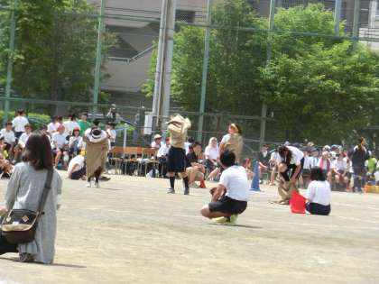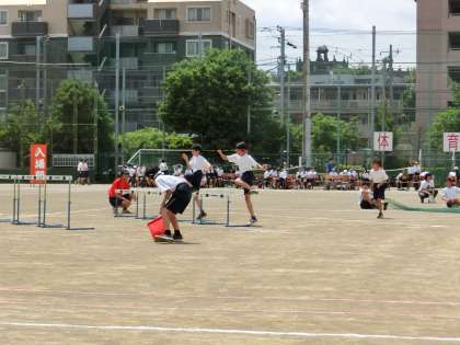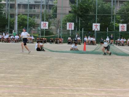 麻袋、網、ハードルなど、様々な障害物を超えてゴールを目指しました。転んでも起き上がってゴールしました。