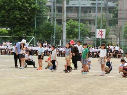 一生懸命走る姿がとても微笑ましく、弦中生も声援をおくっていました。