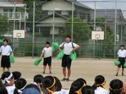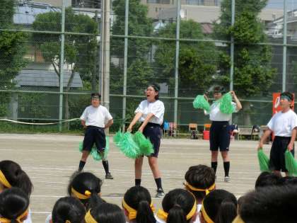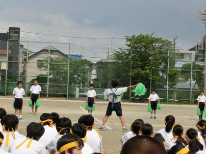 体育大会 応援合戦緑組 5月18日(土) 公開日 2019/05/20 更新日 2019/05/20 できごと 弦中伝統、午後の最初の種目は「応援合戦」。4チームが工夫を凝らした応援をしてくれました。まず、トップバッターは緑組でした。・ いいね(0)