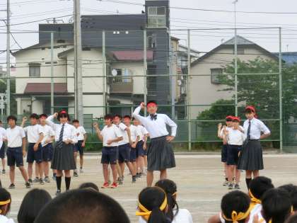 体育大会 応援合戦 赤組 公開日 2019/05/20 更新日 2019/05/20 できごと 最後は、赤組。3学年が、ぴったりそろった「おはー!!」はとてもかわいかったです。 どの団も甲乙つけがたく、審査員も困らせていました。 短い練習の期間で、本当によくまとめました。素晴らしかったです。 いいね(0)