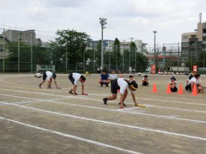プログラム17番。12年生とI組による学級対抗リレーでした。4名のクラス代表が走ります。迫力満点のレース展開でした。