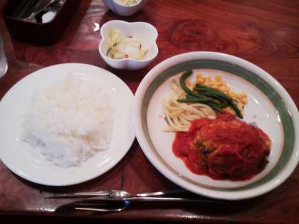 お昼の時間です。一番人気のイタリア風ハンバーグです。おいしいですね。