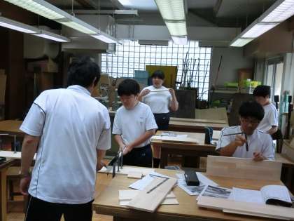 I組では、作業の授業で「木工作品」を製作しています。自分で選んだキッドで、世界でたった一つの作品を完成させます。また家庭科の授業では、スウェーデン刺繍を行っています。