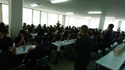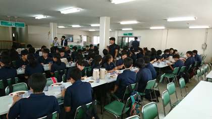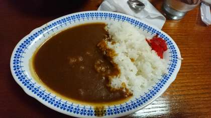 お昼はカレーライス。とても美味しいです。食べ放題です。