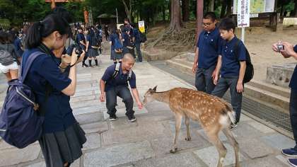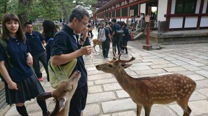 最後は、鹿と戯れました。鹿せんべいをみんなであげました。