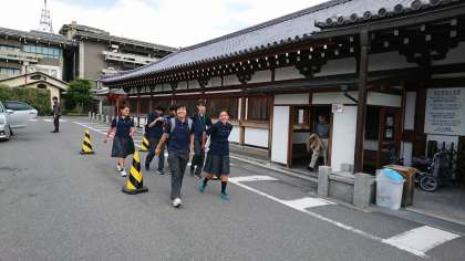 国宝三十三間堂で見学する班を待っていました。美しい千体観音立像は、いつ見ても素晴らしいです。