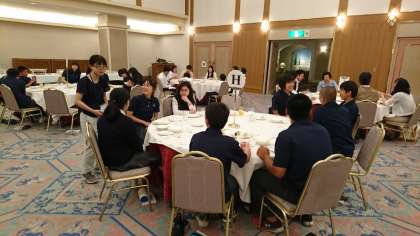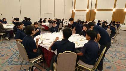 美味しいものを食べてるときは会話もすすみます。みんなとても楽しそうです。引率の先生たちもお腹いっぱい食べましたか?