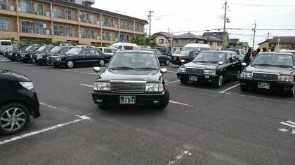 タクシー研修スタート。8時15分第一号車出発しました。本物に出会う体験をしてきてください。