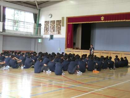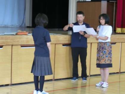 3年生の臨時学年集会では、修学旅行の班活動の表彰がありました。2日目の班行動の時に、出会った先生方からスタンプをもらうというスタンプラリーを行いました。優勝C1班、第2位A6班、第3位B2班でした。おめでとうございました。