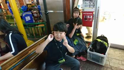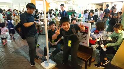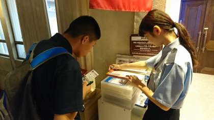 パビリオン予約中。自分の計画書を見て、予約をして、時間まで待っている人もいます。