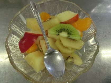 上手に白玉フルーツポンチのできあがり。片付けも協力してしっかりとできました。とてもおいしかったです。