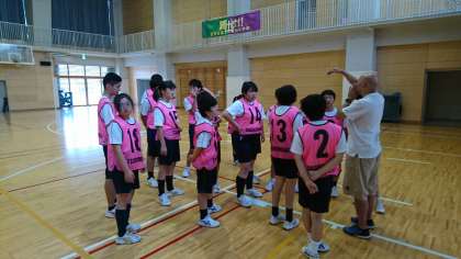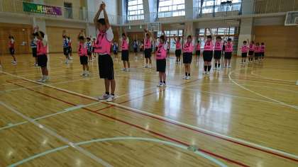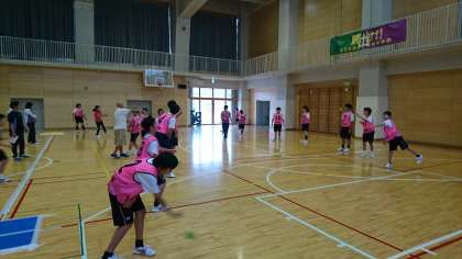 ラジオ体操のあと、キャッチボールで、体を温めています。