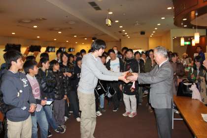 写真左から:優勝トロフィーを主催側代表の池上会長から授与される本校生徒、I組生徒で男子個人2位となった生徒の勇姿