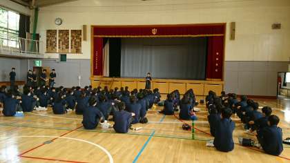 2年生は体育館、3年生は格技室で学年朝礼がありました。
